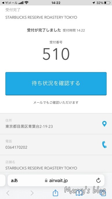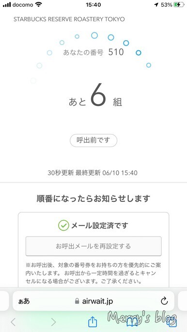 発券後スマホで自分の順番があと何組目かわかるようになっています。