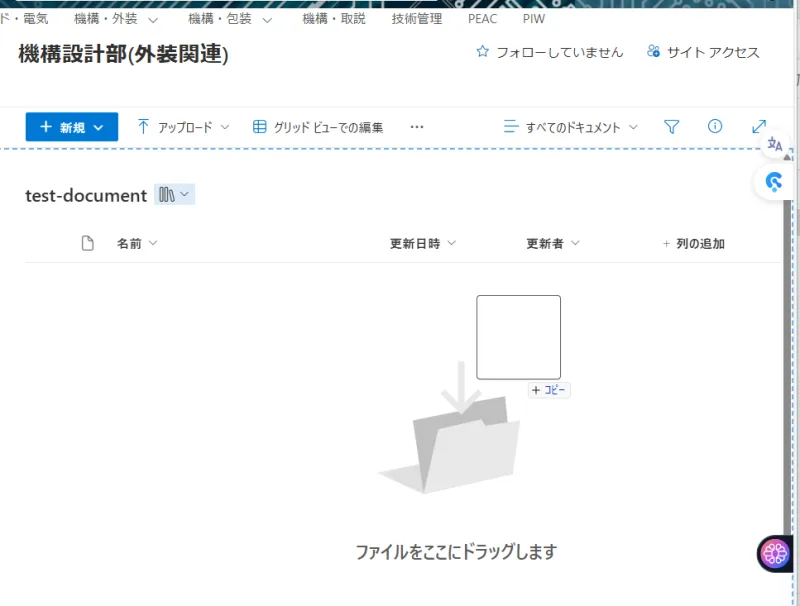 代表でドキュメントライブラリについて手順を説明します。リストも同様です。