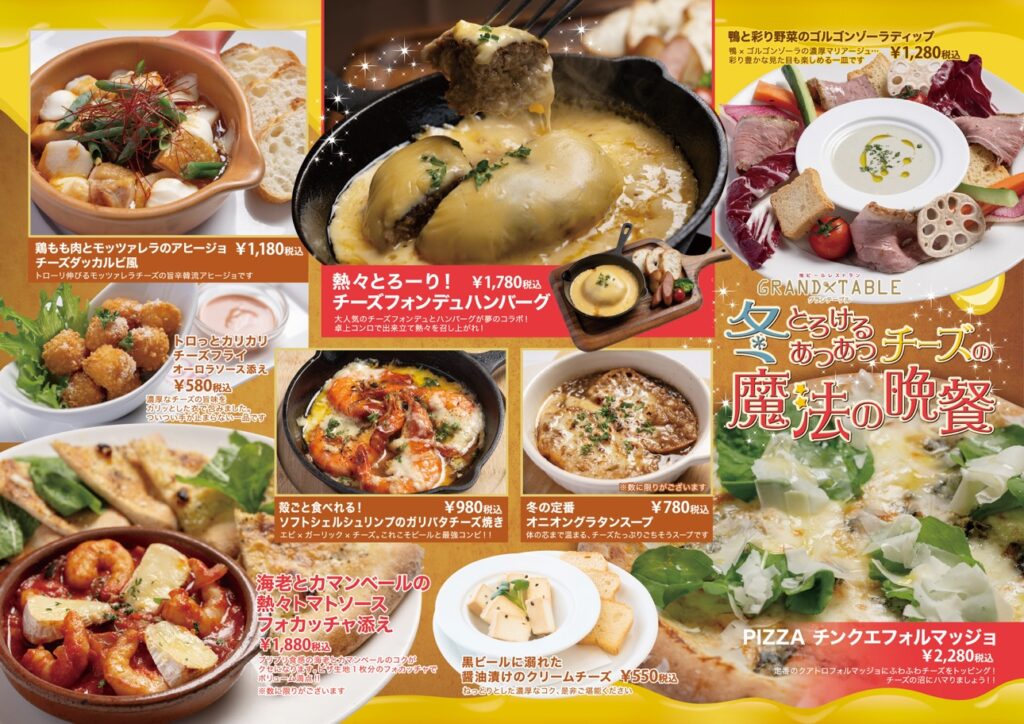 【グランテーブル】冬のフェア「とろけるあつあつチーズの魔法の晩餐」