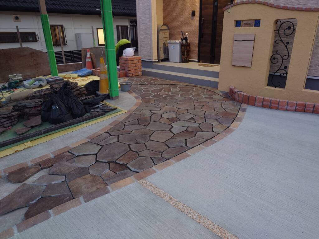 本日の現場の写真はありませんが今日はファイバーレジンと門柱のジョリパット塗り作業を行いました。今回のファイバーレジンの色は琥珀色のファイバーレジンを施工しました。ほかにもたくさんの種類があり違う色を混ぜて施工することもあります。ファイバーレジンを鏝で均していく際ただ均すのではなく少し圧をかけながら均していきます。そうすることで石同士がより密になりきれいな仕上がりになります。門柱のジョリパット仕上げでは全体をしっかり塗るのはもちろんですがポストなどの際や門柱の角なども丁寧に塗っていきます。しっかり塗らないと下塗りの面が出てきてしまい格好悪くなってしまいます。