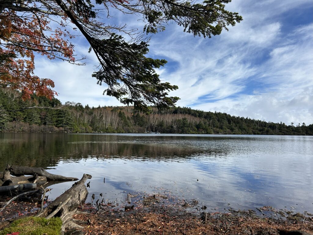 入り口から20分ほど歩くと白駒の池が見えてきました。