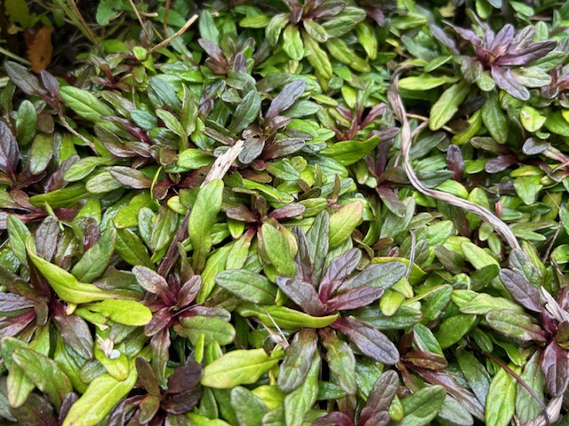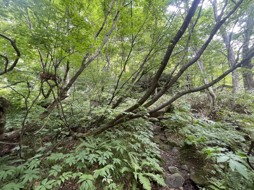 古材の切石のくぼみを利用してスナゴケを植え付けたり、高木・中木・低木・下草を植栽し自然な感じに仕上げました。