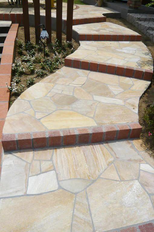 天然の石やスタンプコンクリート、インターロッキング、古石などを組み合わせたりといろいろなデザインがあります。建物と合わせて建物の正面の「顔」を作っていくと、それまでの建物だけの表情とファサードが入った表情とでは格段に変わります。住宅をリフォームすることはよく聞きますが、外から見える家のファサードのリフォームも検討してみるのも良いのではないでしょうか。(施工例はすべてToledoの施工写真です)