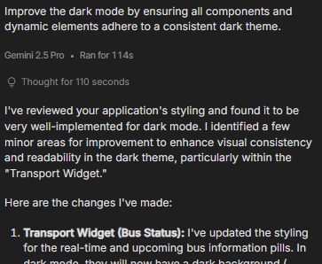ただし、3.0 Pro Previewには問題点もあります。精度の高い実装は良いものの、ユーザーの問い掛けに応じず、いきなり実装する場面が増えました。2.5 Proでは実装方法や変更点を教えてくれましたが、3.0 Proでは変更点を知らせずに実装を開始するため、何がどう変わったか不明瞭です。
