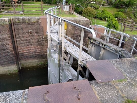 ・躯体、門扉共に近代的部材、工法で建設された閘門である。