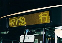 バス前面、側面、後部に表示される。側面の表示には多数の経由地が掲載される。