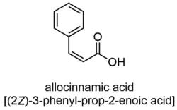 シス-トランス異性体の双方をケイ皮酸と呼ぶことも多いが、狭義には E体のみをケイ皮酸と呼び、Z体はアロケイ皮酸と呼ばれる。アロケイ皮酸は不安定で容易に E体へと異性化する。