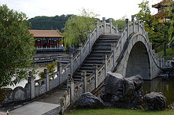 - 金山嶺橋(きんざんれいはし) - 万里の長城の楼閣を模した石張の歩道橋であり、県道29号を跨ぐ燕趙園最大の建造物である。車椅子用エレベーターを装備する。