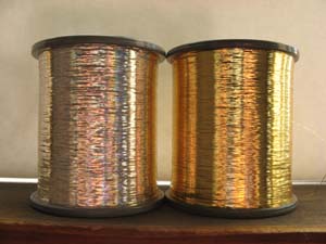 - 平金糸・平箔・箔糸- 金箔や着色したフィルムなどをスリットしたもの。