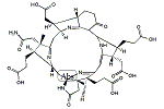 | 体系名: | 2β,8α-ビス(2-オキソ-2-ヒドロキシエチル)-5,7β-(1-オキソプロパン-1,3-ジイル)-12α,17α-ジメチル-12-(2-オキソ-2-アミノエチル)-16β,17-[イミノ(1-オキソエタン-1,2-ジイル)]-2,3,4,5,7,8,9α,12,13,14β,15,16α,17,18-テトラデカヒドロ-10H,21H-ポルフィリン-3α,13α,18α-トリスプロピオン酸 |