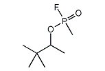 | 体系名: | メチルフルオリドホスホン酸1,2,2-トリメチルプロピル、メチルフルオロホスフィン酸1,2,2-トリメチルプロピル、メチル(フルオロ)ホスフィン酸1,2,2-トリメチルプロピル、メチルフルオロホスフィン酸(1,2,2-トリメチルプロピル)、メチル(フルオロ)ホスフィン酸(1,2,2-トリメチルプロピル)、メチルホスホノフルオリド酸O-(1,2,2-トリメチルプロピル) |
