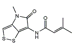 | 体系名: | N-(4,5-ジヒドロ-4-メチル-5-オキソ-1,2-ジチオロ[4,3-b]ピロール-6-イル)-3-メチル-2-ブテンアミド、4-メチル-6-(3-メチル-2-ブテノイルアミノ)-1,2-ジチオロ[4,3-b]ピロール-5(4H)-オン、N-(4-メチル-5-オキソ-4,5-ジヒドロ-1,2-ジチオロ[4,3-b]ピロール-6-イル)-3-メチル-2-ブテンアミド、4-メチル-6-(3-メチル-2-ブテノイルアミノ)-4,5-ジヒドロ-1,2-ジチオロ[4,3-b]ピロール-5-オン |
