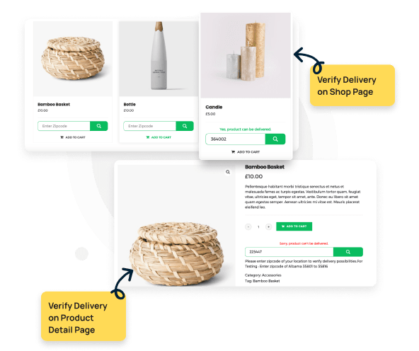 Visitors will see delivery area verify form on product, shop, cart & checkout pages. They can easily check if a product can be delivered to the location specified by them before placing the order.