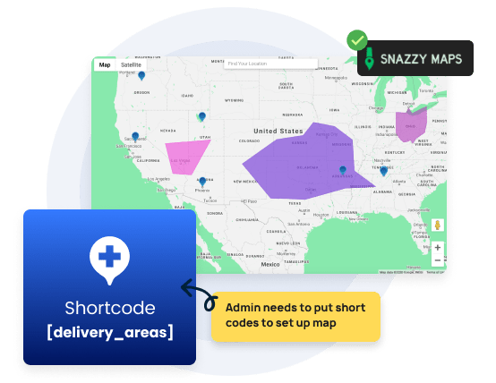 Site admins can display their store's delivery areas to their customers with help of google maps. The map can display markers and shapes to indicate different delivery areas defined in backend.