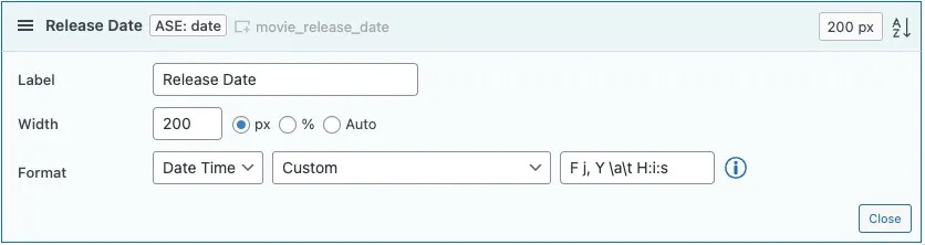 The screenshot above shows F j, Y \a\t H:i:s which will output something like September 30, 2022 at 14:31:59.