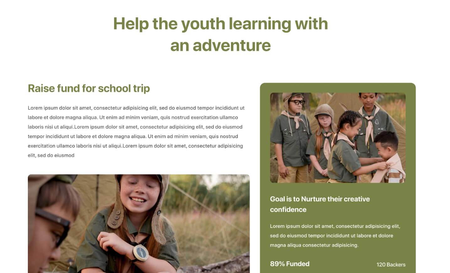 Visually create a beautiful fundraising campaign in minutes without writing any code.