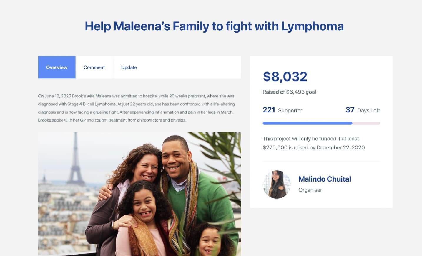 Get started now with the Medical Bills template that allows comments, updates to supporters, and a progress bar.