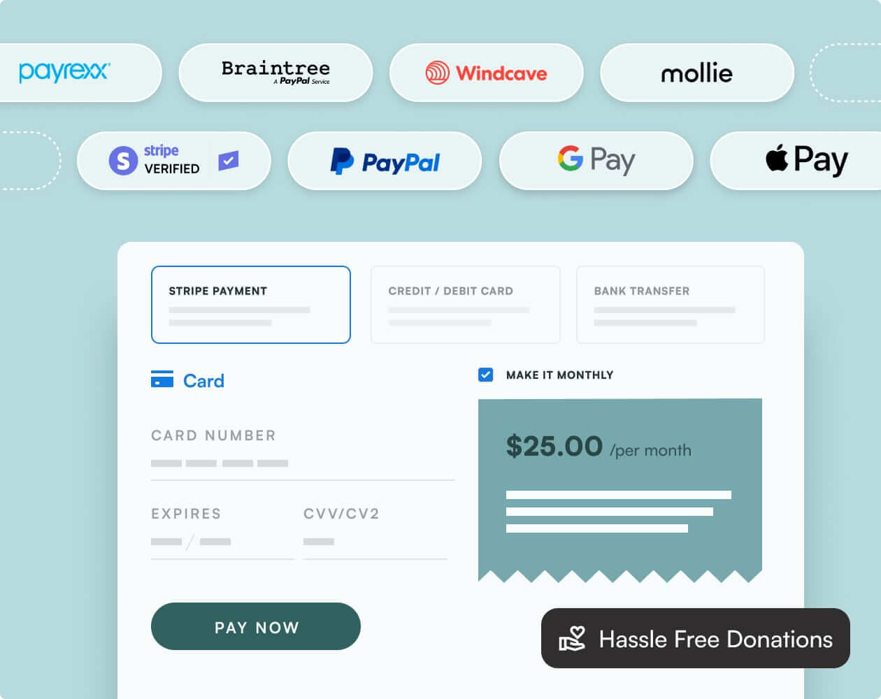 Ensure sensitive payment details are never stored on your website, protecting donors and your cause.