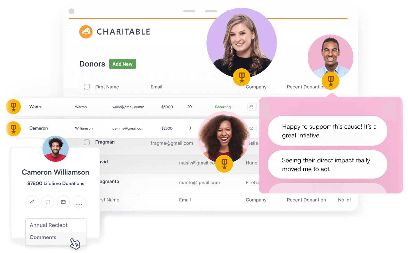 Yes, Charitable offers a complete solution to raise funds and manage donations all in one place. It includes donation forms, peer-to-peer fundraising, annual tax receipts, reports, and so much more. Try it today and see how it can simplify your fundraising efforts – we offer a money-back guarantee.
