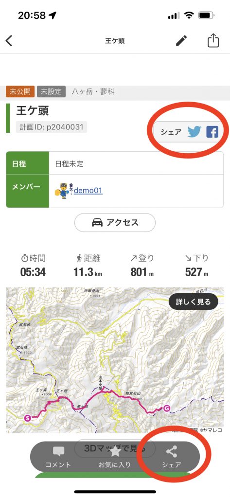 保存した計画はヤマレコのWebサイトからも確認できます。