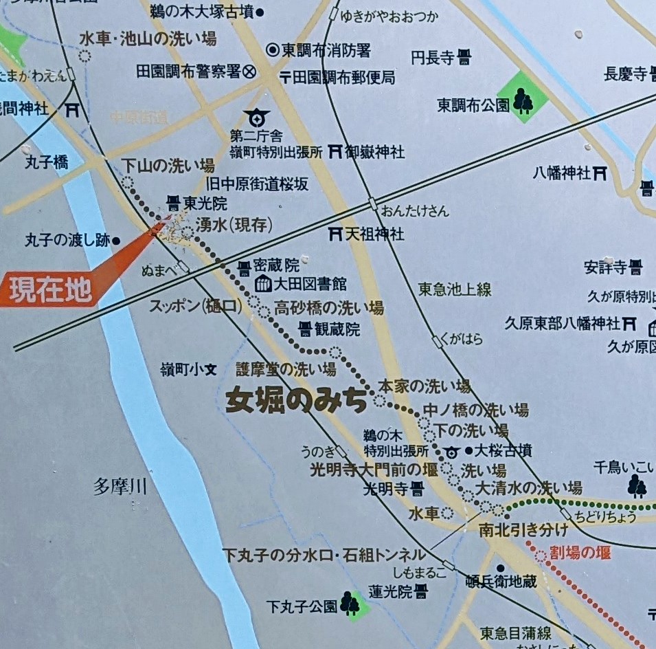 橋の下の道路は、旧中原街道で、橋下の看板によると