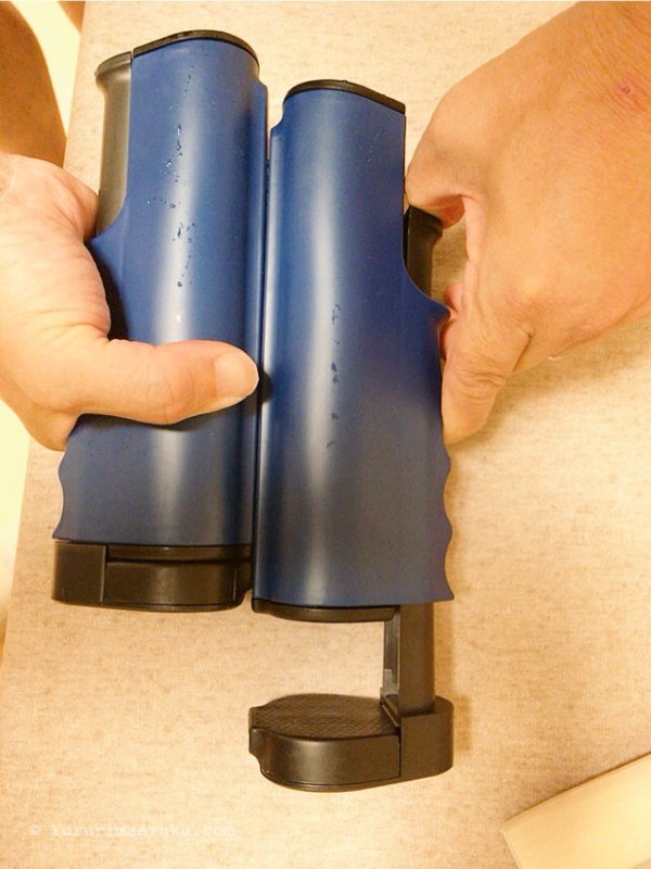 ネットのスタンドは、サイドをグッと押し込むと机に挟み込む部分が出ます。