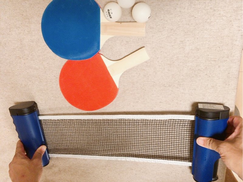先日、夫が卓球セットを買ってきました。ネットとラケットとボール2つで2千円そこそこ。適当なテーブルがあれば自宅で卓球を楽しめるんです。