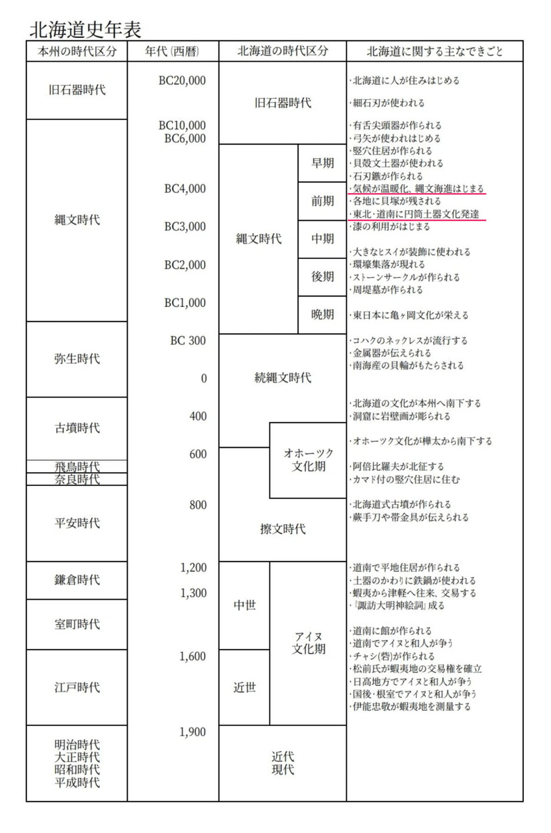 赤の下層式は「縄文時代前期後半(紀元前4,000年代後半)」で、北海道の西半分に普及していた、、