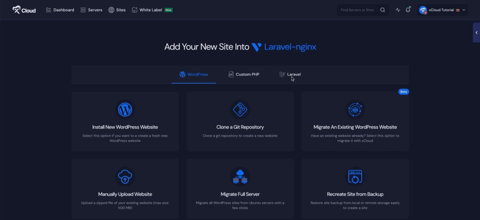Deploying Laravel applications can often involve multiple steps and intricate configurations. xCloud simplifies this process by providing a streamlined platform tailored for deploying modern PHP applications, including Laravel, with minimal complexity. This tutorial provides a comprehensive, step-by-step guide to help you deploy your Laravel application using xCloud. If you are launching a new project or migrating an existing one, you’ll learn how to set up your server, configure your Git repository, manage your database, and finalize your deployment—all within the xCloud environment.