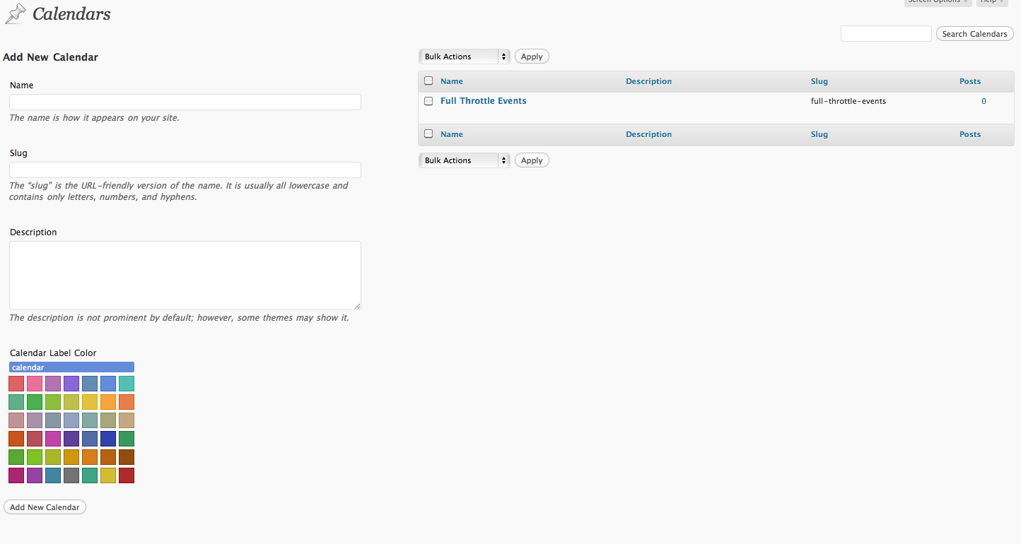 - Fixed bug preventing calendar label color from not appearing properly when editing the taxonomy
