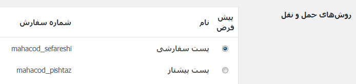 پس از نصب این افزونه دو روش ارسال پستی (سفارشی و پیشتاز) به فروشگاه شما اضافه خواهد شد