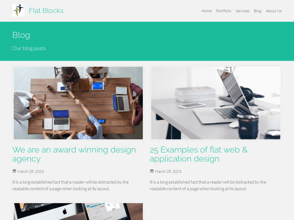 Flat Blocks is a modern “flat” style theme with a nice color palette, full and wide width support, and support for the new “Full Site Editing” in WordPress.
