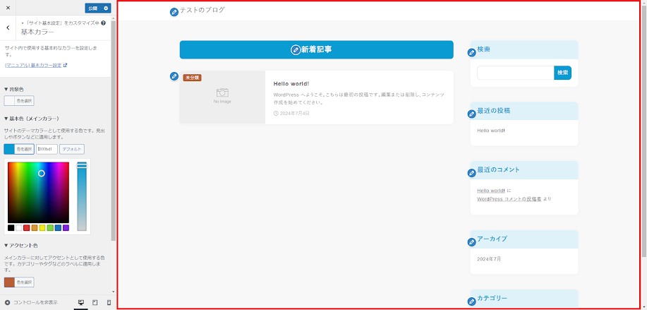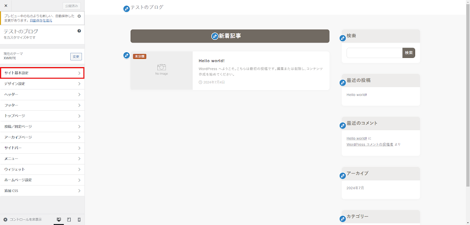 サイトをカスタマイズしていくときの各種設定は、「カスタマイザー」によりリアルタイムプレビューが可能。