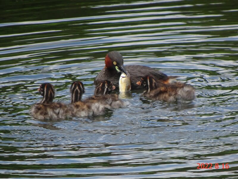 さて、「カイツブリ」の「雛」ですが、今日も元気に泳ぎ回っています。