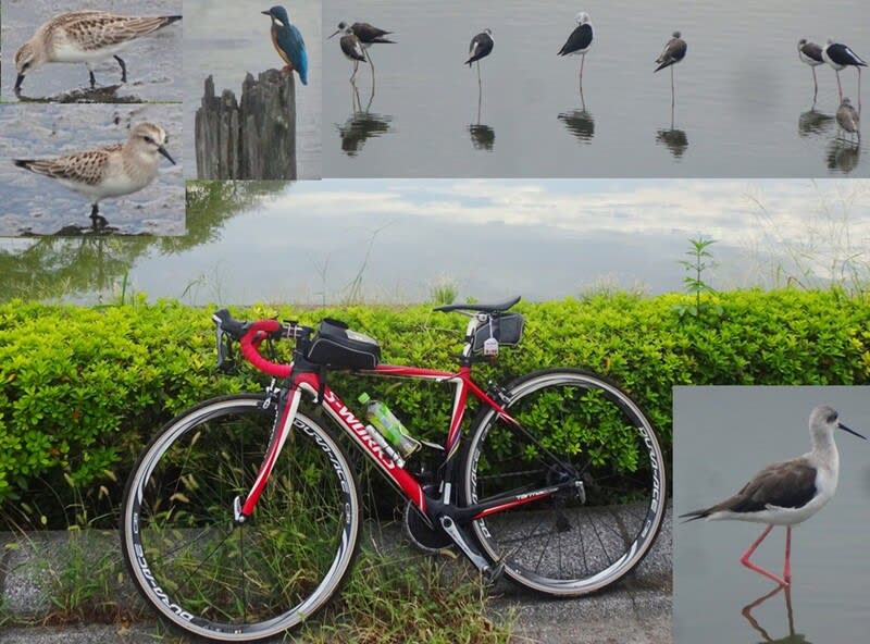 今日も「セイタカシギ・トウネン」が居る。遠くに「カワセミ」も見える。