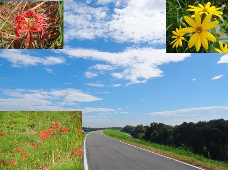 「治水橋」~「羽根倉橋」までの間の、例年は一面の「ヒガンバナ」となる場所では、まだ咲き揃っていない。