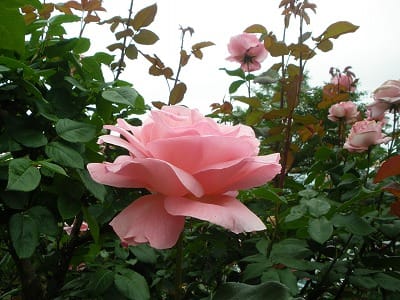 花色はやわらかい桃色です。グランディフローラの代表種で、樹高1.8m以上になります。やや甘い芳香。新種名はイギリス女王エリザベス2世に因みます。