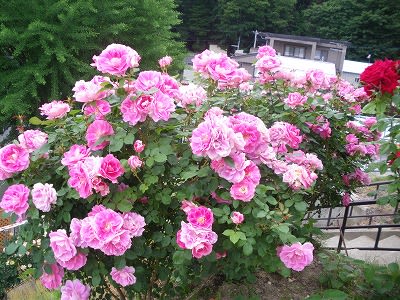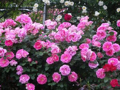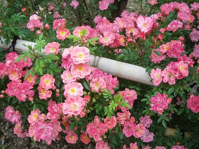 枝にびっしりとサーモンピンクの小輪の花をつけます。一季咲で、とても丈夫、マイルドな香り。別名:Ferdi