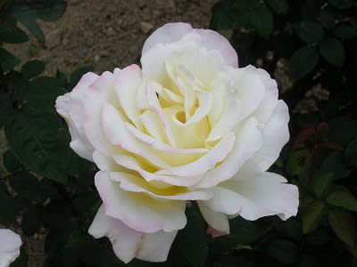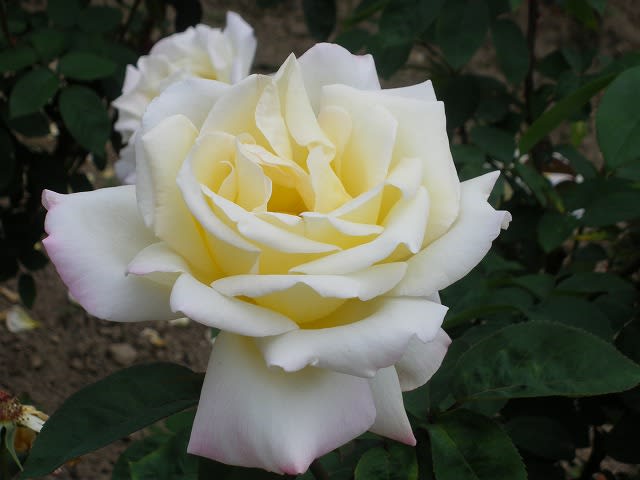 花色は淡いアイボリーに近いクリーム色に薄いピンクのぼかしが入る柔らかな色。大輪でとても豪華な花です。良い香りがあります。