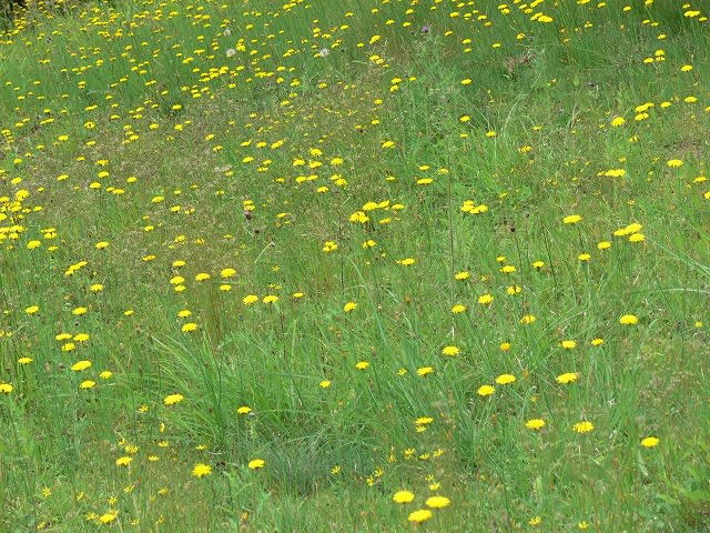 石段の下の方はブタナが群生していました。