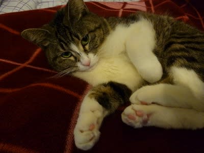 今日のカリン様。毛繕いの最中を無理矢理パチリ。迷惑そうな顔してますね。
