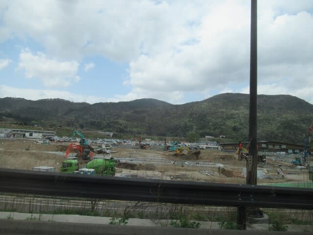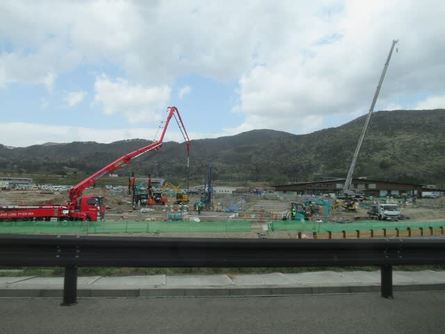 道の駅ふくしまの隣は大掛かりな工事中です。建築家の隈研吾氏設計の工場が建つらしいです。