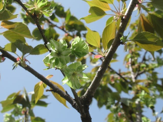 緑の桜 御衣黄ですが、赤のラインが出てきました。