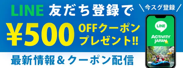 LINE登録すると、オトク情報や限定クーポンがもらえます。 - →アクティビティ 大使クーポン詳細を見る