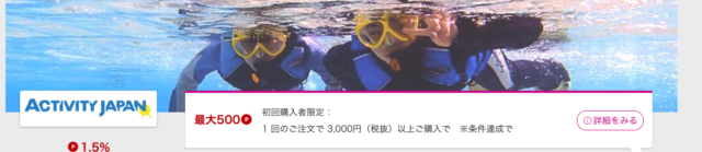 アクティビティジャパンの楽天リーベイツ経由クーポン