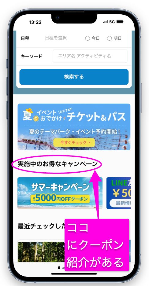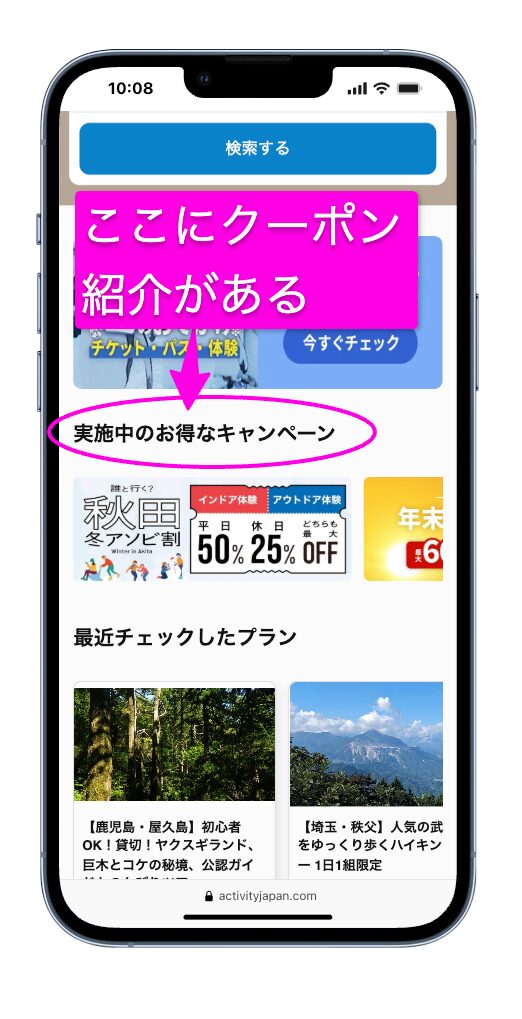 まず、アクティビティジャパンのサイトでクーポンを獲得します。
