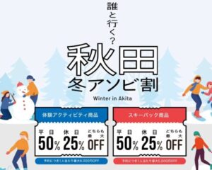 最大で5000円割引も!全国で使えるからまずチェック! - →秋田冬アソビ割 クーポンコード