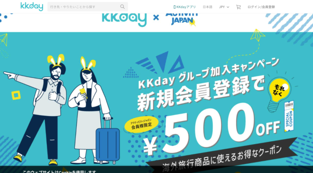 →KKday新規会員登録で500円オフクーポン