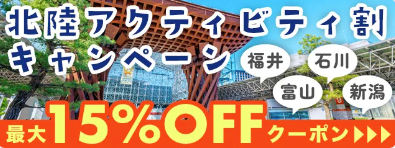 終了:【アクティビティジャパンの北陸応援割】15%OFFクーポン