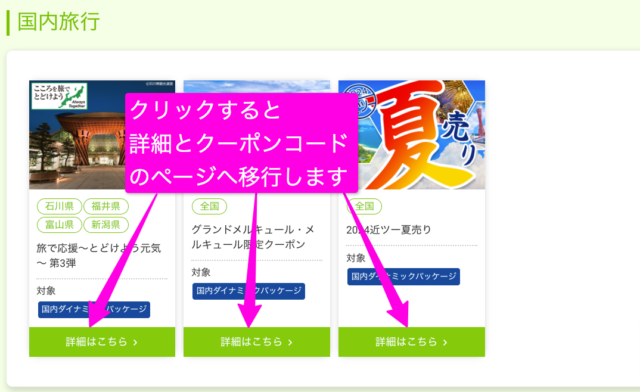 - 旅行先の都道府県で使えるクーポンや、特定のキャンペーンで発行されるクーポンなど、様々な種類があります。